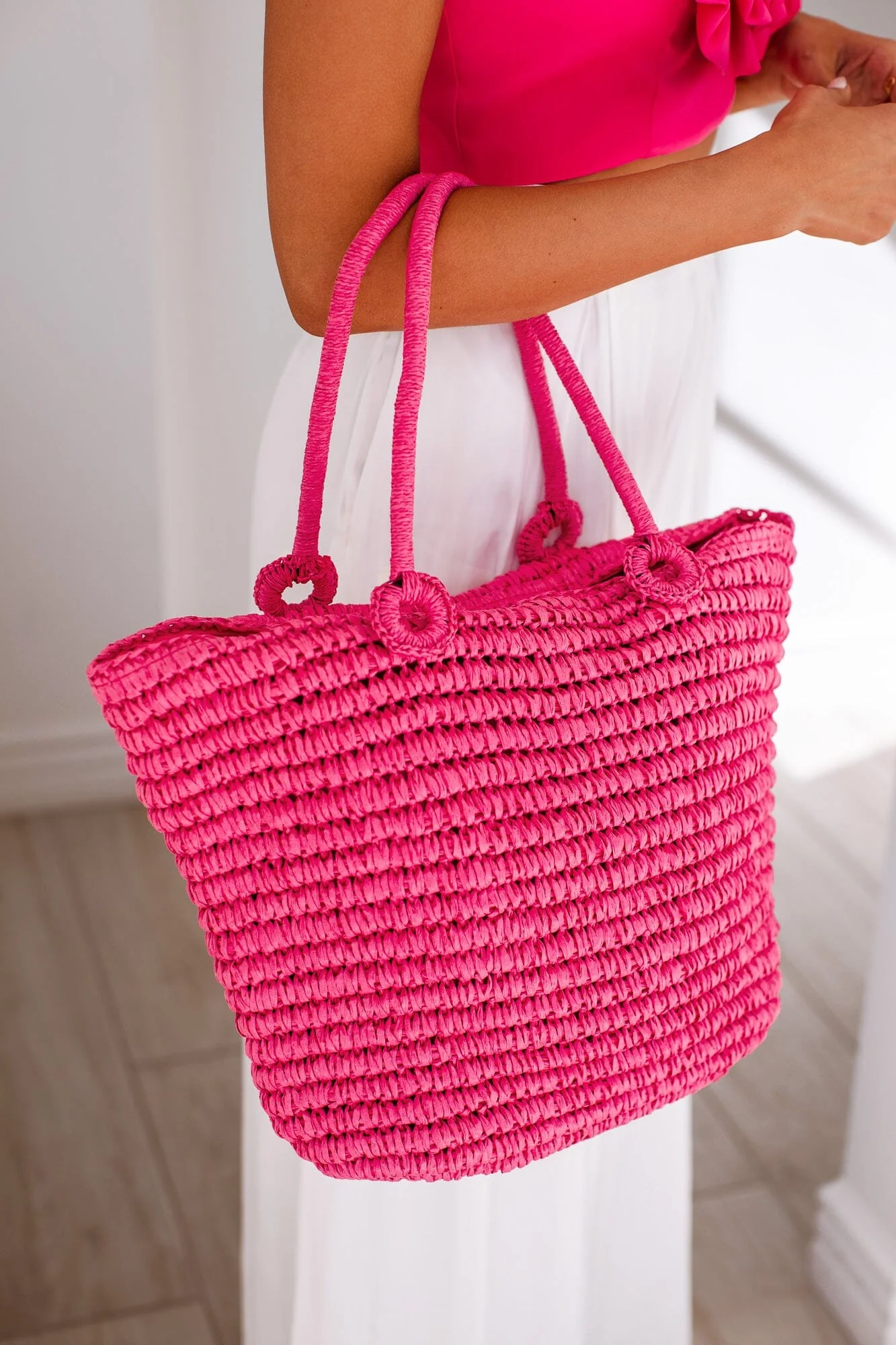 Day Off Hot Pink Straw Tote—
